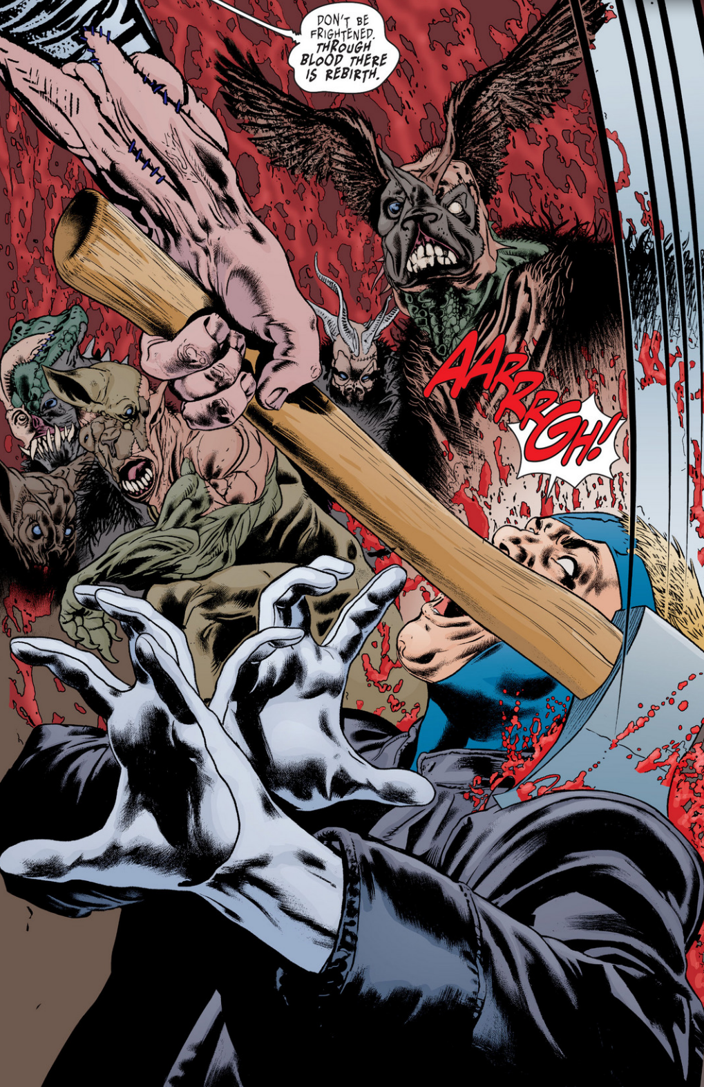 Shelby: Honestly, can’t they be both? I firmly believe creative and imaginative and sick and twisted are not mutually exclusive states. My first exposure to Animal Man was a marathon of six or so issues, and it literally gave me nightmares, precisely because of panels like these, and I love every second of it.