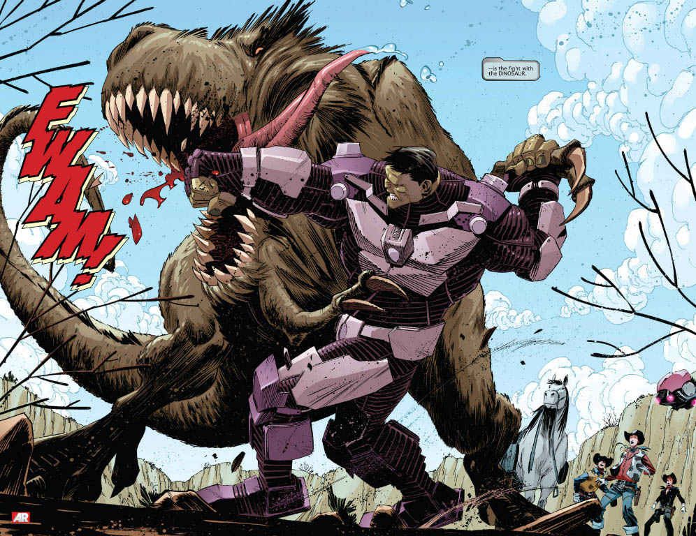 hulk punching a dinosaur