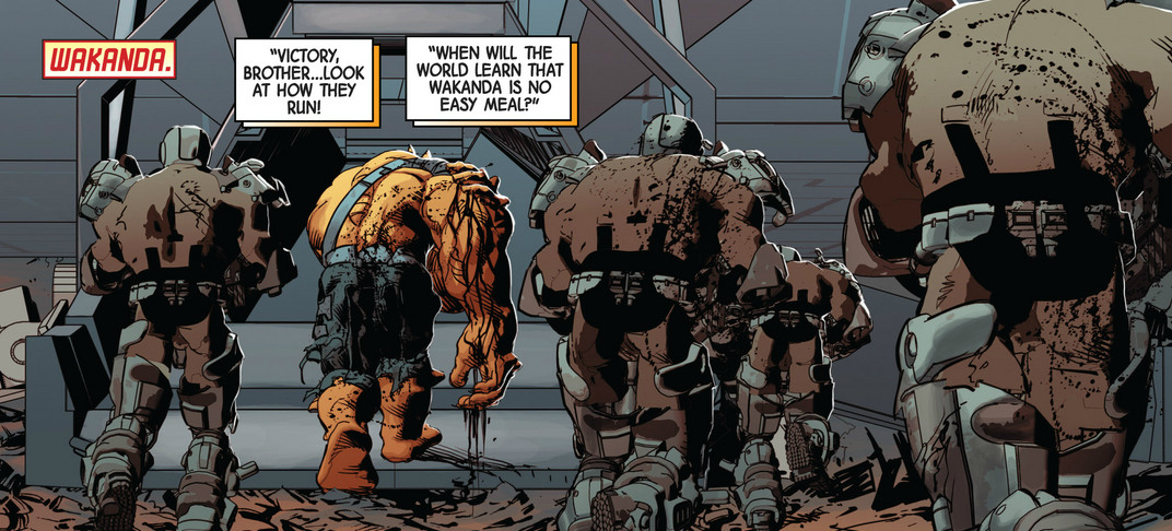 The arrival of Thanos is certainly going to goose the tension, but I’m already at the edge of my seat about the T’challa/Namor stuff. The X-Men sequences seem like a total red herring — sure, impaling Wolverine is an impressive feat, but we all know he’s going to survive (maybe in time for a surprise attack). We’re led to think the Jean Grey School is in peril, but I’m all but certain that the Black Order will be sent packing when we pick up with them again.