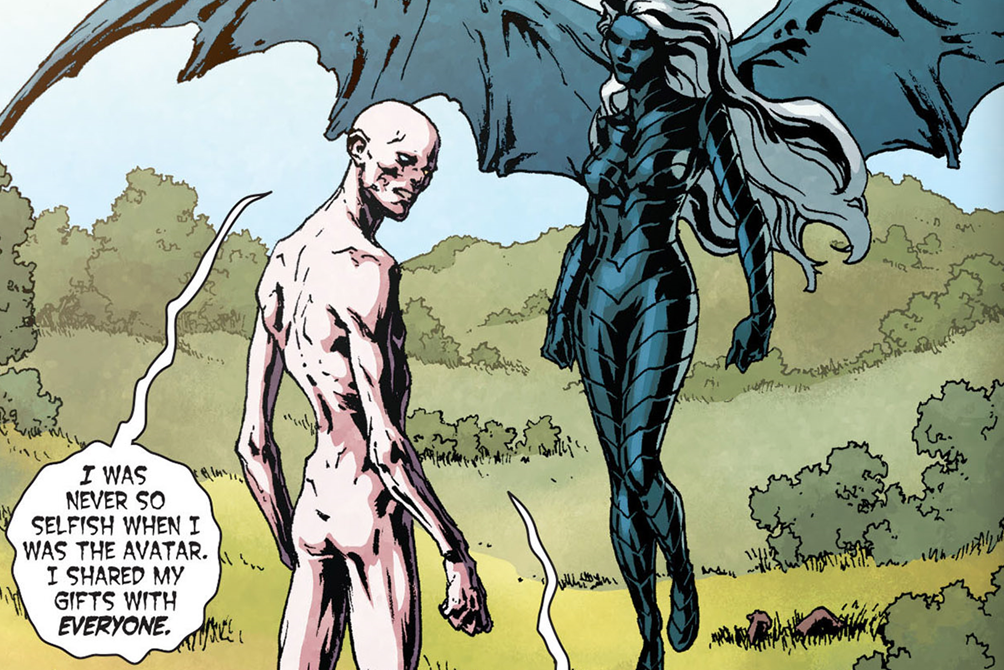 Mikyzptlk: Honestly, I’ve always thought of Arcane as such a straightforward villain that I didn’t think it mattered what his backstory was. Leave it to Charles Soule to show me how wrong I’ve been. To answer your question, Scott, I’m frightened just watching this dude from afar, but Soule definitely has me wanting get into his head. Although, thinking about getting into the mind of Arcane makes me want to jump right back out again. This issue was unsettling and disgusting, but since it’s about a former and current avatar of the Rot, it certainly should have been those things.
