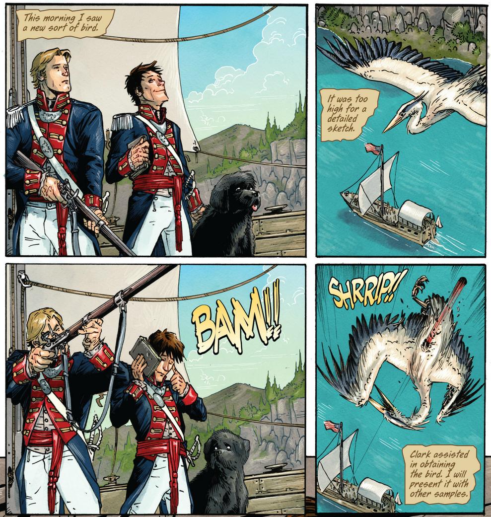 Lewis and Clark aren’t the only characters we are introduced to in this issue though. Patrick has already mentioned Wally and Jensen, but there’s a sizeable handful of other characters that we really haven’t had the pleasure of getting to know yet. One of those characters meets his unfortunate end, while another, by the name of York, discovers something unmistakingly foreboding.