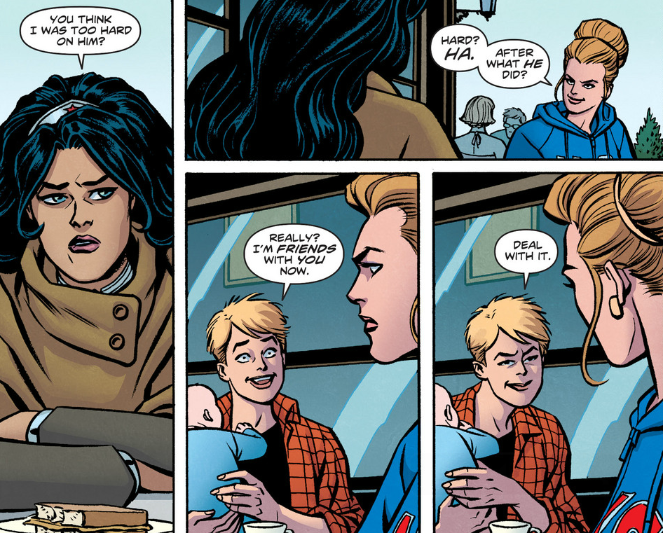 Think about it: her arrival on Themyscira is heralded by in-fighting amongst the Amazons (which boils over to the revelation about Diana’s true parentage once she’s actually there), her presence seems to always bring some level of disagreement to whatever group she visits, and — perhaps most importantly — her absence often allows for reconciliation. I don’t think it’s a coincidence that Strife is absent as Diana considers forgiving Hermes. The same is true of Zola and Hera, which makes me particularly interested in what will happen now that it’s just the three of them (and Zeke, but he’s just a stupid baby). I’m not sure Strife’s plan is any more devious than setting these two characters at each other’s throats, but I’m not sure it needs to be. In-fighting has long been the gods’ greatest weakness, and I fully anticipate Strife reintroducing that kind of conflict to the group Diana has spent such care cultivating.