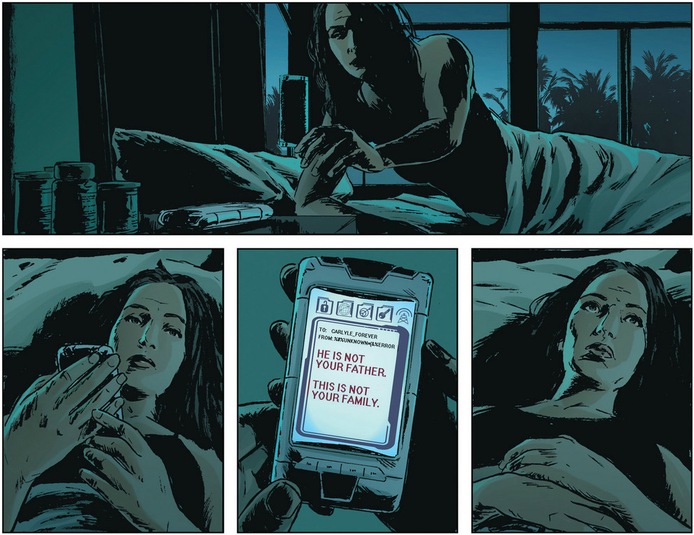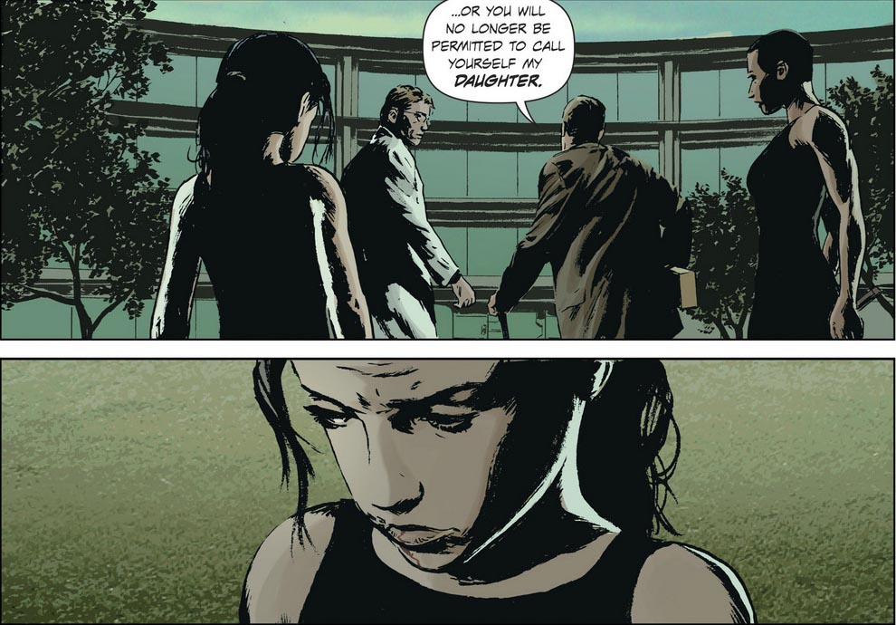 It’s interesting, Shelby, I totally agree that this issue is all about loyalty, only there isn’t a scrap of it to be found anywhere. The seeds of distrust are planted too deep in this world, they can even corrupt the Lazarus made specifically to have a blind spot as far as distrusting the family goes. I can’t think of a better word for everyone’s fealty to Carlyle, but it certainly isn’t “loyalty.” Here’s hoping we can come up with something in the comments.