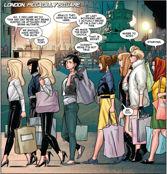1. Mutants vs. Inhumans is fun and all, but I actually forgot that was going to be a part of this issue until it happened – so enthralled was I with the X-Ladies shopping adventures!