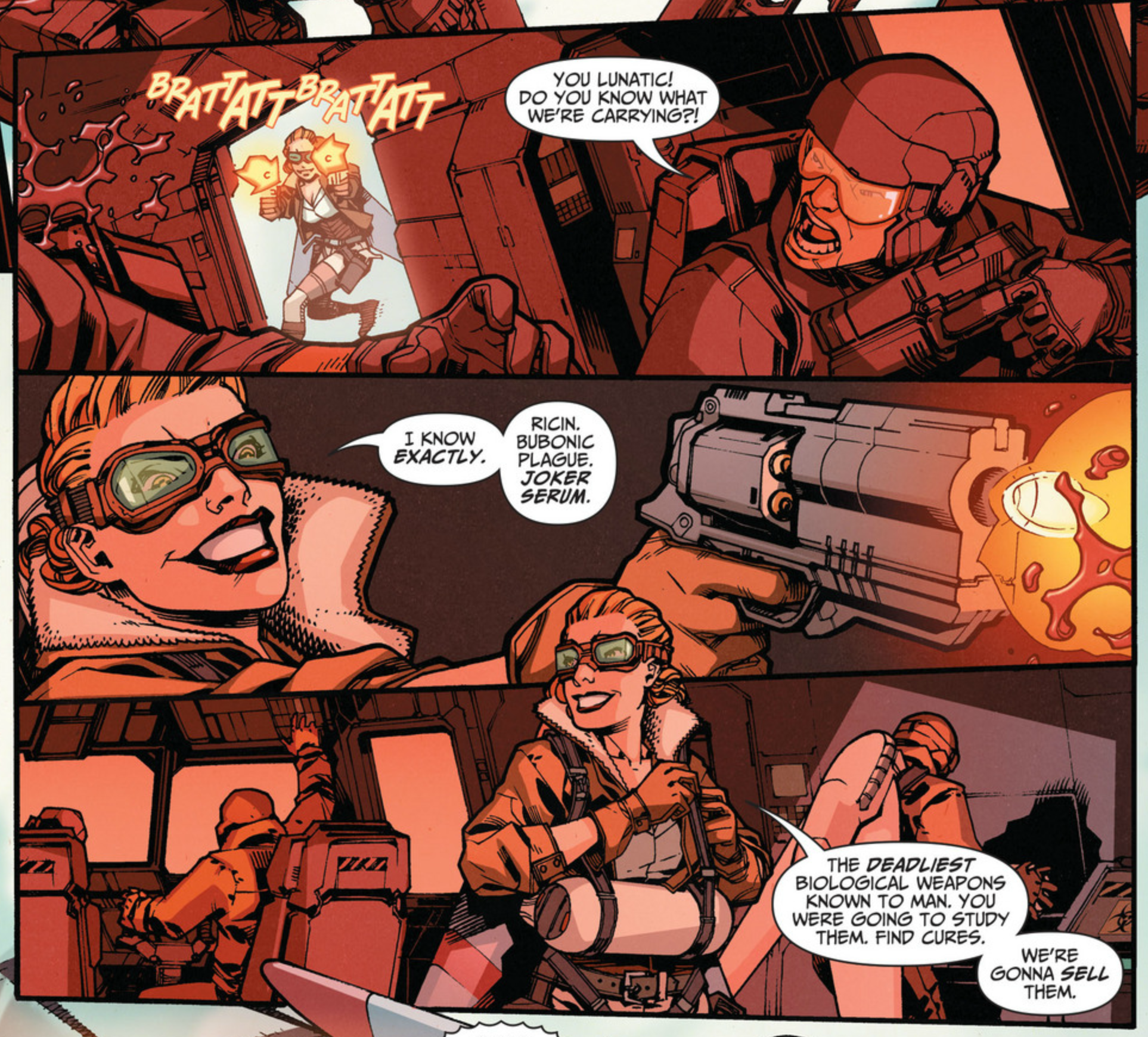 Elsewhere, however, the issue has little success. What might have developed into an intriguing detective story is derailed by Barry immediately discovering Spitfire was at the scene of Dr. Carlson’s murder (and the fact that Spitfire is fingered as the murderer in the cold open, before we even get to the crime scene). Spitfire isn’t all that compelling as a villain, either. She performs stunt-heists seemingly because she knows how to do stunts and she’s pure evil. Perhaps that’s enough motivation for a comic book villain, but Spitfire is so exceedingly evil that all of her dialogue sounds clunky.