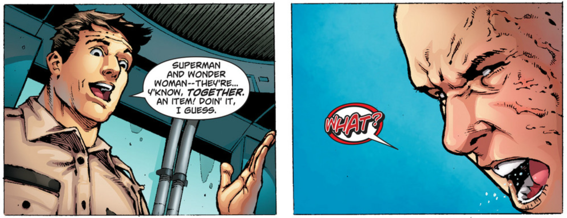 Scott, you’re totally on point about Diana hardly factoring into this issue. With Diana possibly going back to her Amazons for awhile it seems like our two lovebirds could be split for awhile. If that happens it could be unfortunate, since so far the strength of this series is the dynamic between the two. Also, Lurher’s reaction in that picture is priceless.