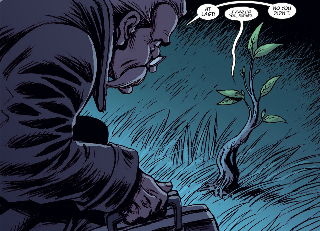 This issue is set some time after Geppetto’s fall from power (longtime Fables fans might be able to place this more precisely — all I know is that Snow and Bigby are together here), as he struggles with the fact that he is magic-blocked from entering the new Sacred Grove (where all of his former soldiers are now trees). Of course, that magic only prevents him from entering the grove, so he sends a tiny wooden soldier in his stead. The marching orders are to ask for the loyalty of Geppetto’s old soldiers, but they’re less than thrilled with the lot in life he carved out for them (HA). More importantly, the magic that turned them into trees is apparently still in effect, and starts to transform the tiny wooden soldier, as well. He rushes back to Geppetto, dejected, but this was apparently Geppetto’s plan all along: he just needed to get his hands on some of that sweet, sweet Sacred Grove magic. By the issue’s close, Geppetto has planted the soldier-tree near Grandfather Oak, as he plots their partnership in raising a new army.