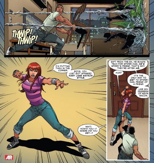 Also, here’s to hoping that MJ continues her badassery. Kudos to Dan for not making her the typical damsel in distress. That hit with the webshooters was the best action in the this issue if you ask me.