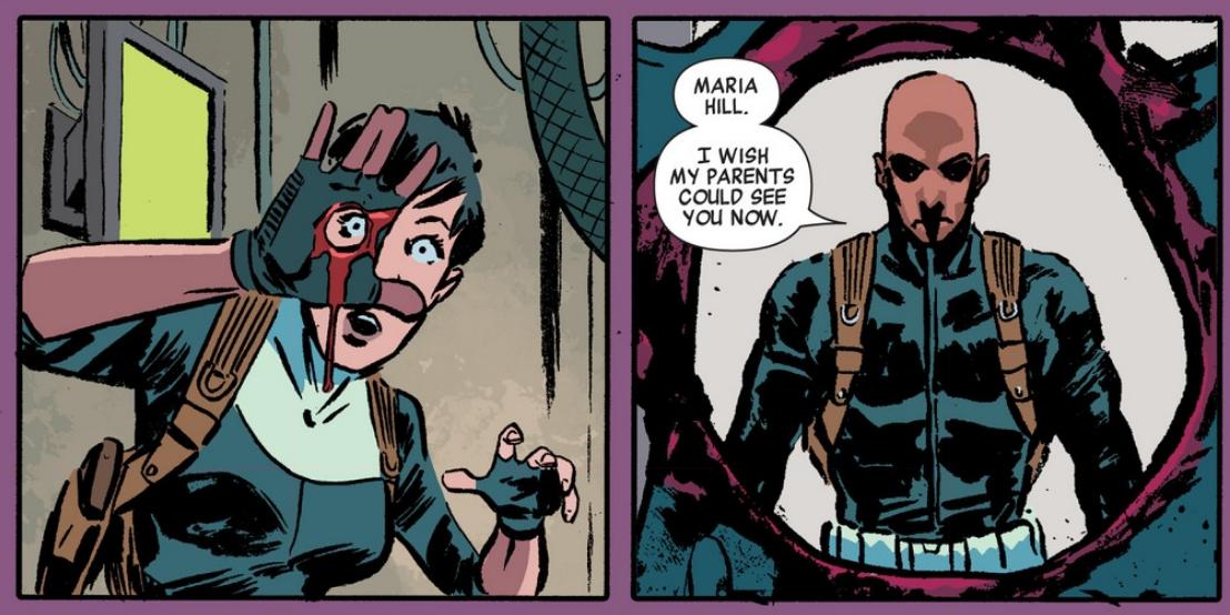 You guys, remember how much we liked those three issues of Suicide Squad that Ales Kot wrote? And also remember his brilliantly brooding future-spy drama Zero? Well he brings all of that bad-assery, and mixes in an impressive amount of levity for Secret Avengers 1. The story follows the Spider-Woman and Black Widow as they’re called into action on their day off to assist Nick Fury and Phil Coulson. They’re battling an alien in a space station because why not? A.I.M., M.O.D.O.K., Hawkeye and Director Maria Hill are all in the mix, as is a S.H.I.E.L.D double agent gunning for Hill. It’s a hilariously overstuffed issue, capped off with a sense of gleeful exuberance that’s come to characterize Marvel’s most successful series. Come to think of it, this feels a lot like Thunderbolts, just with a lot more devilish sense of humor. One of the ways Natasha and Jessica are spending their day off is getting massages, followed by some heavy firing range action. That’s therapeutic for them and funny for us — one of the weapons in their arsenal is a pair of Hulk hands. My favorite darkly humorous gag comes at the end of the issue, when Director Hill raises her hand to defend herself against her would-be-assassin, only to get a nice solid blown through it.