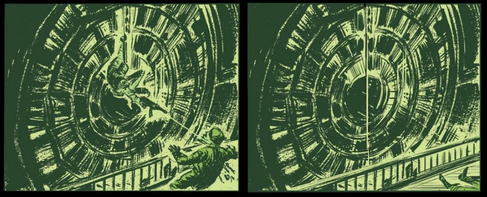 Taylor, I think that’s a beautiful point about Del Ray and Bellaire’s work: while awesome, it does take a little extra eye-work to make out the action in those first 20 pages. And there’s so much of it! But it’s all worth putting in the work, especially when those final pages open up, brilliantly lit by the portal.