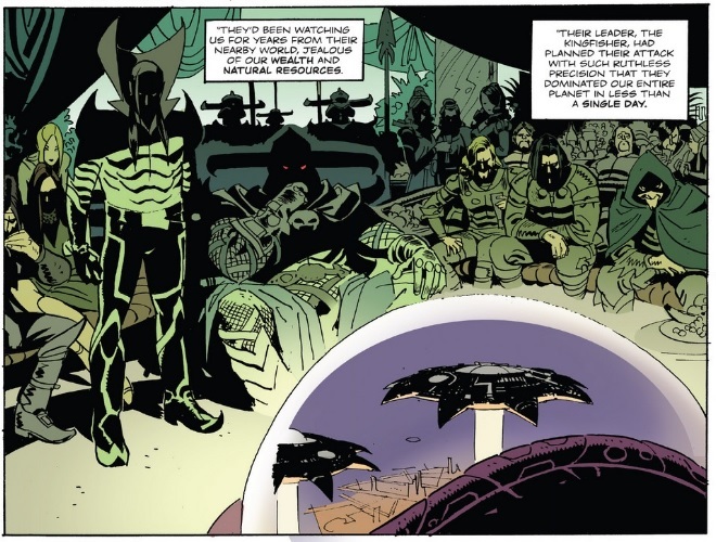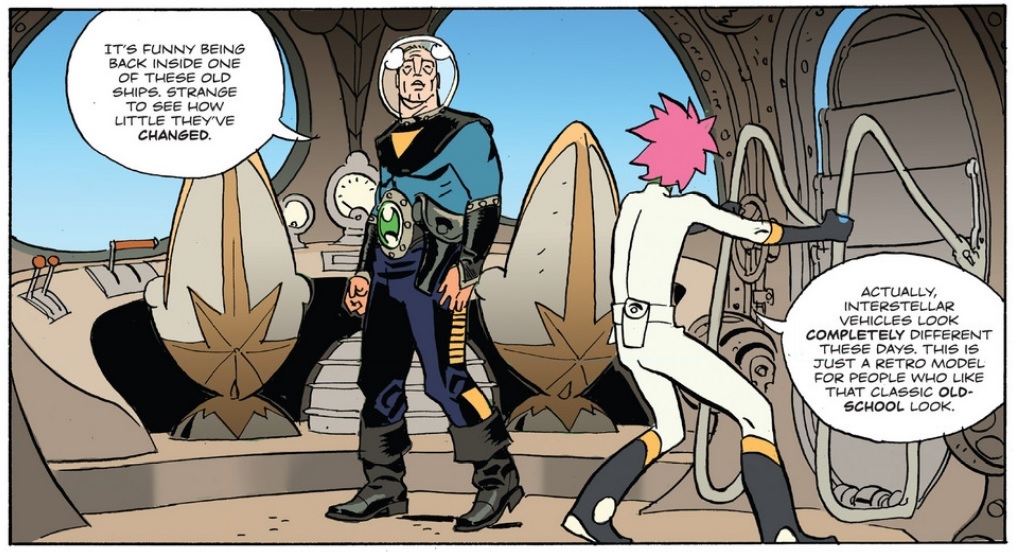 Yup, the reason Krish’s ship looks old is because that just happens to be the way some people like it. It’s a triumph of form over function but one that has a place in this series. It kind of throws a wrench into the whole design of the comic, making it known to the reader that yes, Parlov is borrowing from the days of sci-fi old, but god damn it you’re still going to love it even if it’s used and rusty. I love this acknowledgement because it shows us that Parlov and Millar have faith in their readers intelligence. Basically, we’re all in on the joke.