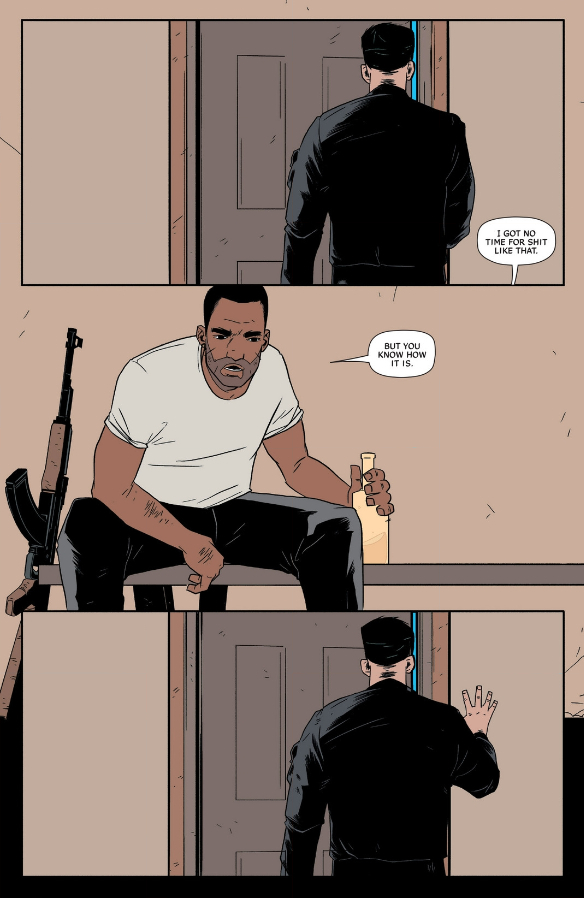 This issue is a study in philosophy. While that can be said of this series as a whole, I found this issue to be particularly meditative. In many ways the events of here seem to be the sounding board for writer Ales Kot’s musings on love, betrayal, loyalty, and death. While there is some major shit that goes down, it all seems to take a backseat to the tone that Kot establishes early in this issue.