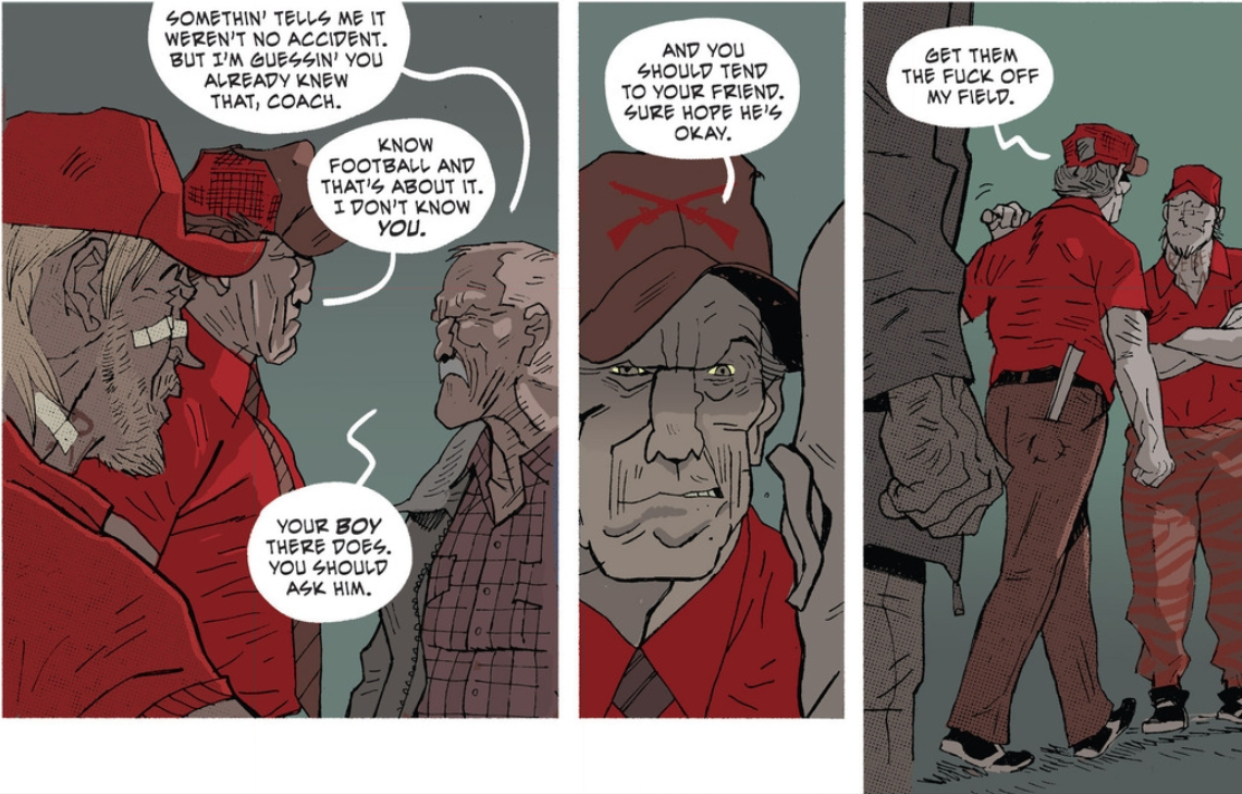The notion of a high school football coach crime lord is a distinctly small southern town idea — who else could wield this kind of power, or command this kind of loyalty? — but Aaron and Latour carry it off without a self-conscious thought. This series had its voice right out of the gate, and seems to only be getting better. I can’t wait to see Earl start waving that bat around town.