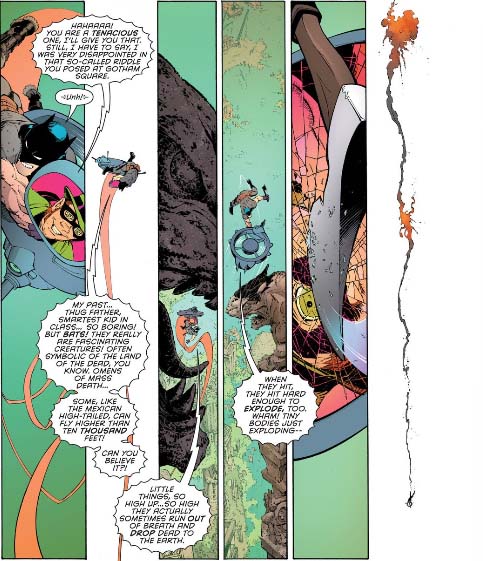 Shelby, I too love how Capullo so often makes Batman small in this issue, and while I agree with your take on this approach, I also think it really helps add some oomph when Capullo finally does allow Batman to take up more space.