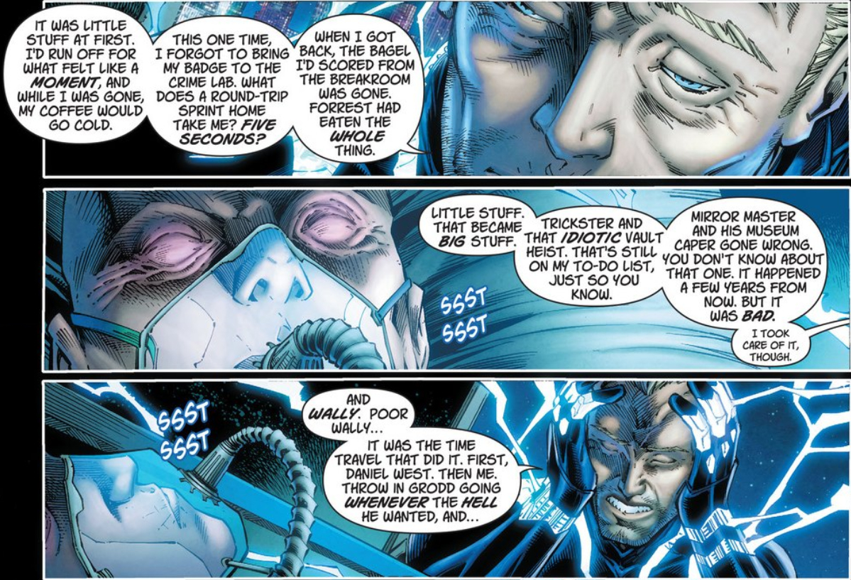 That’s what the Flash of the future says, at least. He explains to Captain Cold — who, 12 years from now, is on his deathbed, riddled with cancer from Dr. Elias’ experiment — that all the time travel he, Reverse-Flash, and Grodd have done is ripping the Speed Force apart, and taking all of time and space with it. Future Flash is traveling backwards, fixing his mistakes, all with the intention of eventually killing himself.