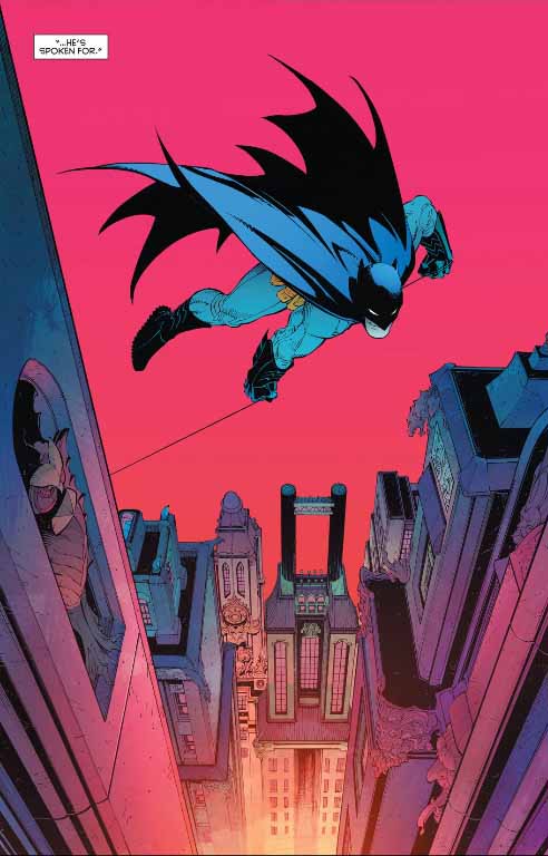 Those are key pieces of color for the New 52 version of Batman, but again, it makes him seem truly pitiful. Batman has always been kind of a sad character, but framing that sadness as a series of missed opportunities to truly live takes it a step further. Batman isn’t a badass spirit of the night so much as he is a cautionary tale about emotional fixation. That the story ends with Batman swinging through the night sky isn’t a triumph, but an expression of loss that manifests itself every day in Bruce’s life.