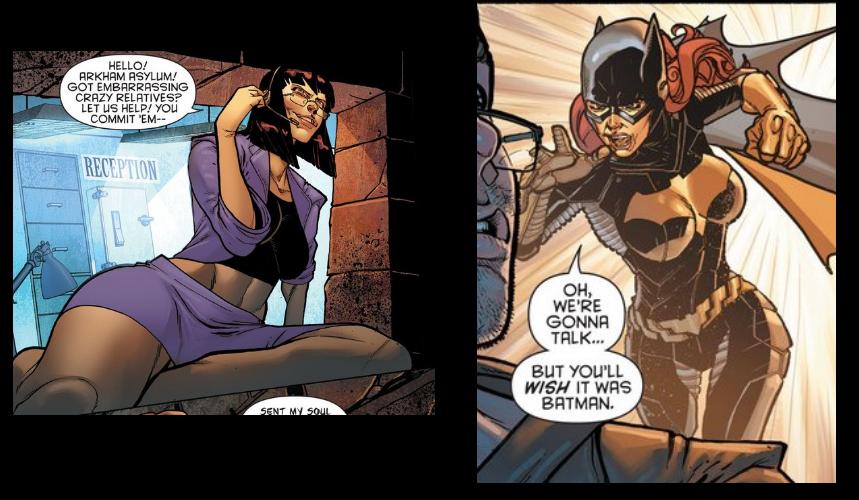 Anyway Patrick, I really like your feminist take on this issue. Catwoman has long been my favorite character whose book I never actually read, and that’s because she’s so often poorly written and unnecessarily sexualized. If Seeley and the other writers are indeed trying to reclaim Selina’s agency, though, then I don’t think think they let artist Javier Garron in on it, because he too unnecessarily sexualizes Selina and other female characters, and not in any “parody” kind of way that might fit with Patrick’s reading but in a “this is the depiction of female characters we rally against” kind of way, which is a shame since, writing wise, Selina, Steph, and Babs are well represented.