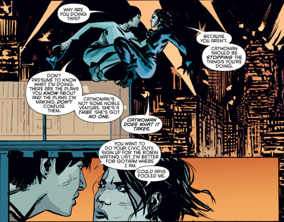 I love the idea of the persona of Catwoman being such an independent operator that even if Selina isn’t the one behind the mask, she’d still chafe at the thought of Catwoman taking orders from someone else–even her!