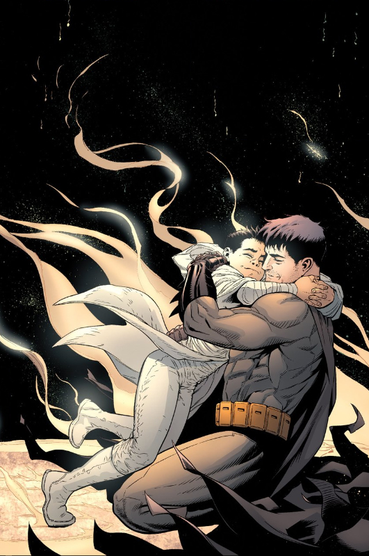 Patrick pointed out a lot of potent symbolism in this issue, but none of it has as much power as Bruce and Damian’s embrace. How can I possibly be against Damian’s return after seeing Gleason’s precious little ten-year-old Robin reunited with his beloved father? It’s impossible, I tell you! Maybe the future will prove some of our worries justified (though I hope not), but for now, I’m just so happy to have this little brat back.