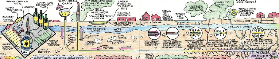 Of course the big and thinly-veiled metaphor of the issue is that “gracking” is analogous to the real-life practice known as fracking. For those unfamiliar with the process: fracking is a process wherein water, chemicals, and sand are pumped into the ground to create fractures in the subterranean earth. The end goal is to release natural gas which companies can harness and then sell as a source of power. If that sounds exactly like what Darrio explains in the book, it’s because it basically is.