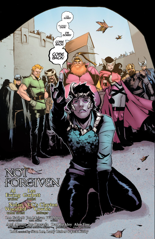 It’s a bold way to begin a story, with the hero speaking directly to the audience. We learn on the next page that Loki is actually talking to Verity, but his apology doubles quite beautifully as an apology for all of the comic-y nonsense that has hijacked the series. Ewing and Garbett were under a spell (or an editorial mandate); they didn’t mean it.