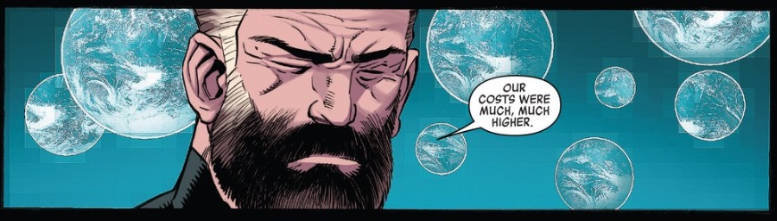 If that little joke from Secret Avengers was Kot absolving us of the responsibility of playing along, then New Avengers 29, is basically the same thing. Fans love to speculate over what typical reset buttons are going to be pushed for the sake of CHANGING EVERYTHING, and Jonathan Hickman and Kev Walker trot them all out in this issue, only to see how each one failed. Cosmic cube – destroyed. Galactus and the Celestials – disappeared. Franklin – jesus, I think he was crushed by a star or something? With the multiverse dwindling down to dangerously few worlds, it comes down to Hank Motherfucking Pym to wrangle in the Beyonders and save (?) the day. It’s a massive info dump, but it’s the kind of info dump that’s years in the making (or decades depending), and Kev Walker gives each of those little failures the emotional weight they require. reed mourns It’s huge Marvel mythology, as told through the emotions of it’s characters, which means it’s basically Hickman at his finest.