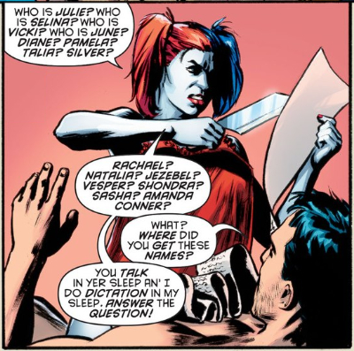 Again, maybe we’re supposed to hate this other woman because she has the spare mil’ to throw around at a CHARITY AUCTION, but this is an outrageous act of violence you wouldn’t even expect of Deadpool. I guess that’s my biggest beef with this issue, and the reason I stopped reading this series: neither the jokes nor the non-jokes land with any kind of honesty. If there was any integrity to this story, Harley would get more than a few strange looks after murdering this woman at a fancy gala. But nope! This kind of non-commitment to reality makes me think the whole series is a Harley Quinn dream, and I don’t like hearing about anyone’s dreams. Y’know: because they’re boring and don’t make sense.