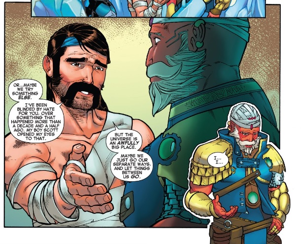 This moment is about as heroic as they come, and it’s significant that Scott’s heroism is something Corsair is proud of. He may be a scoundrel and a rogue, but he’s proud that his son is something more. Of course, Corsair was never the worst to begin with — he explains to Scott that he and Malafect were once actually friends, until Malafect got greedy and Corsair refused to participate in a mutiny he had planned. They’ve been bitter enemies ever since, and that’s why it’s so significant that Corsair is not only eager to help his son rescue Malafect anyway, but that he’s even willing to try to bury the hatchet and put an end to their feud once and for all.