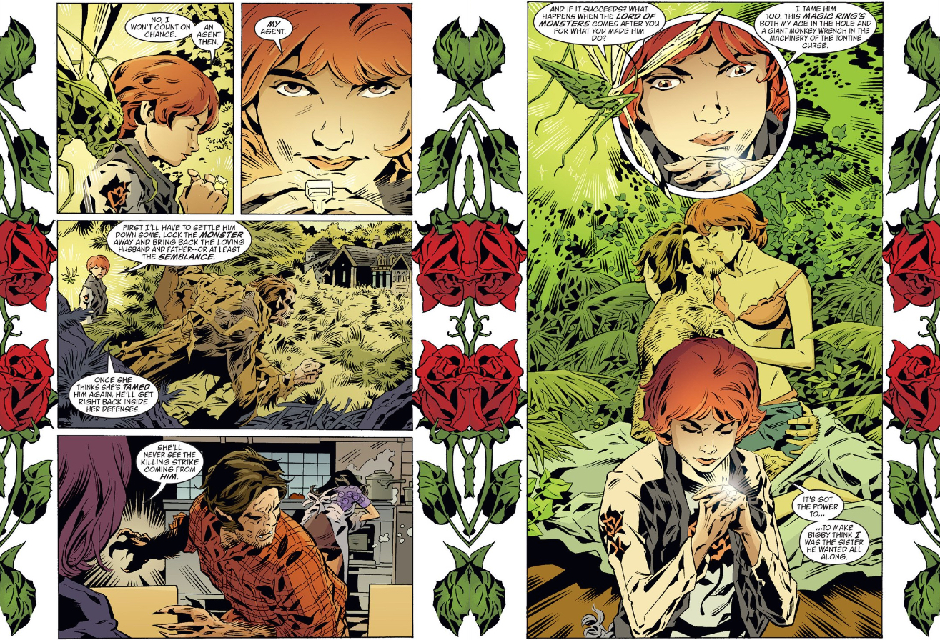 Or — and I won’t count this option out — they might just be part of the fairytale set-dressing. Roses are a loaded enough symbol even before we factor in the prevalence of enchanted roses in folklore. Heck, the backup of this issue features Briar Rose, a character who famously suffered another unlucky finger-prick. Taken together, these touchstones make for a strange echo chamber of symbolism, sending our mind swimming through a potent mix of meaning and recognition. That’s a familiar feeling for this series, but I hesitate to rely on any conclusions I may draw from that echo chamber, mostly because I haven’t quite settled what writer Bill Willingham’s final word on Fables will be.