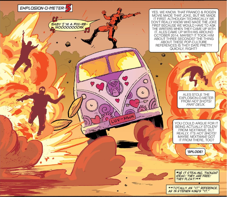 With Deadpool dying in three more issues (you all knew about that, right?), this issue may have been Posehn and Duggan’s last chance to go all-out with the jokes before the plot takes over. If so, I certainly think they closed out this aspect of their run on a memorable note.