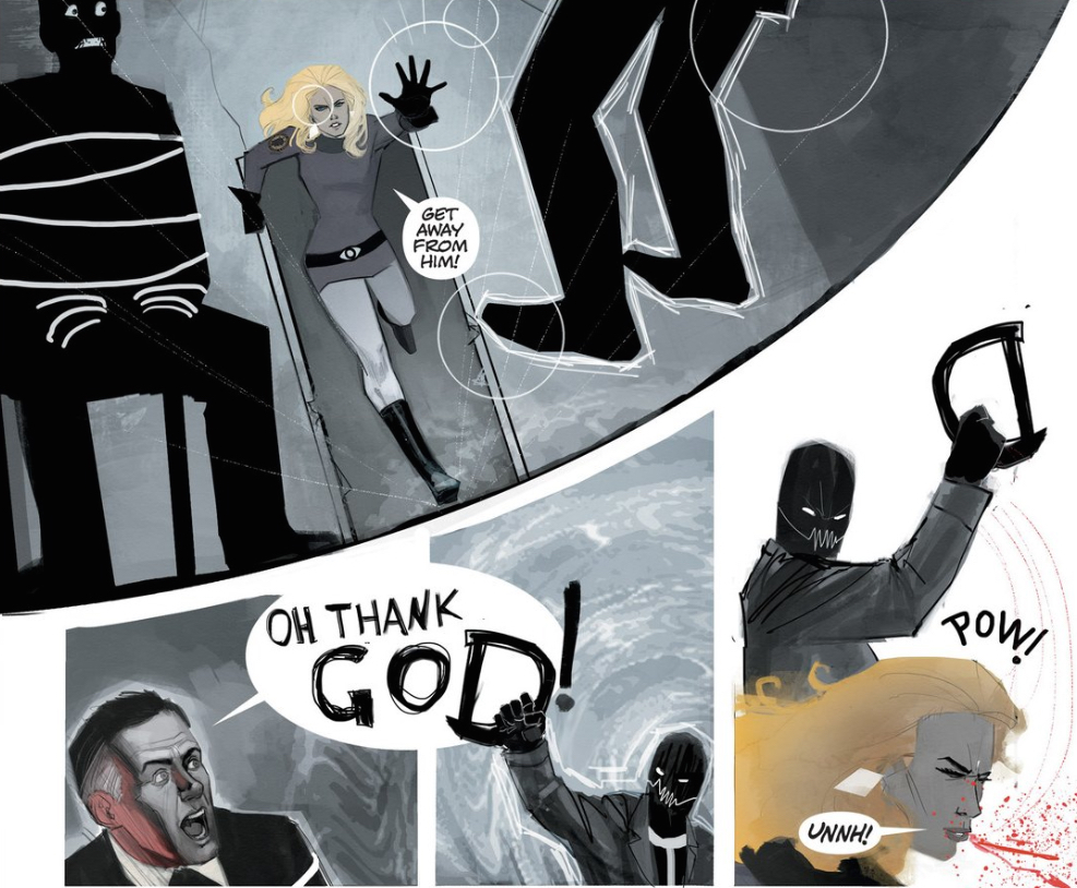 Not that it’s an easy win, by any means. Higgins and Siegel put her through her paces, but the real star of that sequence is Rod Reis, who cleverly illustrates Doppler’s sound-manipulating abilities by having him interact with the actual sound effects and speech balloons throughout the scene.