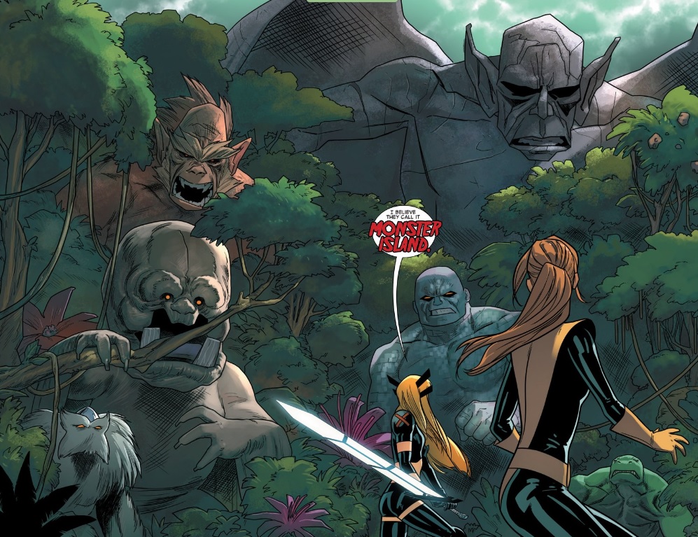 In a fit of frustration at Scott disbanding the Xavier School, Illyana has transported herself and Kitty Pryde to MONSTER ISLAND! The ostensible reason for this act is that she wants to rescue a stranded mutant, but in reality she might just want to take out her frustration by punching some monsters. After the required quota of monster punching is fulfilled, the ladies find their stray. Turns out her name is Bo, she’s maybe five years old, and her dad abandoned her on the island because she accidentally killed her own mom. Kitty and Illyana take this orphan and bring her to the Xavier School where she’ll hopefully live happily ever after…because that’s how all mutants live out their days.