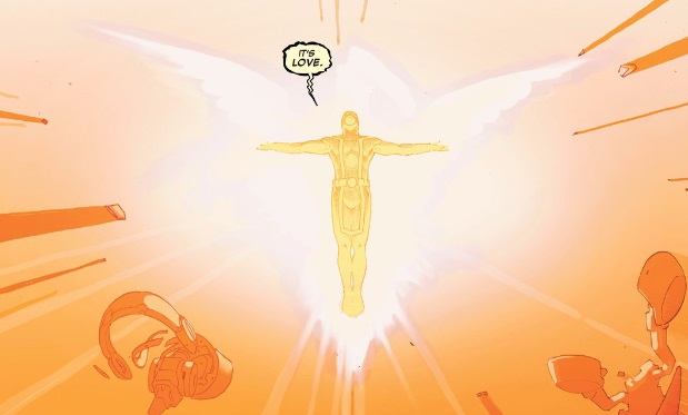 I thought this issue was great, and I imagine there are different specific beats of panicked desperation for all readers. It’d be fun to take a random sampling of readers and see which they responded to most strongly. For me, one of the most potent “holy shit, we’re not fucking around here” moments was Scott allowing the Phoenix Force to take control of him (even going so far as to identify it as “love”).