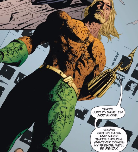 Not to mention that Flashpoint Aquaman is there, and he, y’know, DIED in the Justice League tie-in (though I can forgive King and Lobdell for not reading that)