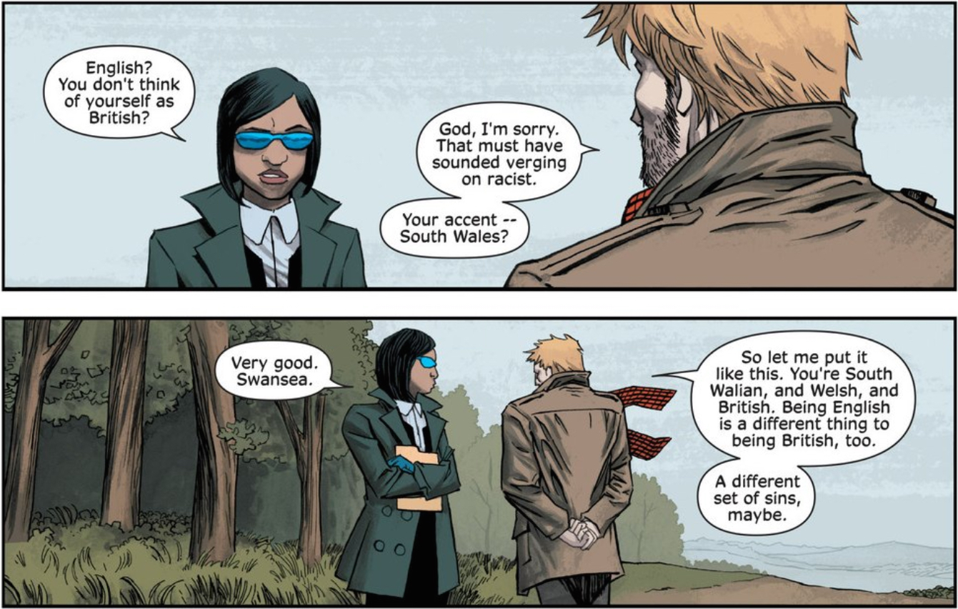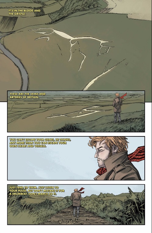 Dr. Morel, with his shaggy blonde hair and trench coat, already looks just one Silk Cut cigarette away from being a preppy, white-collar John Constantine. People have utilized this road for over five thousand years — that’s before the Bronze Age and the disbanding of the Roman Empire! The countryside also stands for one of the most significant times in the English literary tradition: the pastoral. This class of literature presents the idyllic life of those who live in rurality, as told by poets such as Edmund Spencer, John Milton, and Percy Bysshe Shelley, whose voices are synonymous with England. Morel’s time on this hallowed stretch of cultural space reminds me of the Constantine arc called “The Fear Machine,” in which the ley lines — a mystical network of spiritual energy — are a focal-point, furthering the similarities between the Cunning Man of Morel and the Laughing Magician of Constantine.