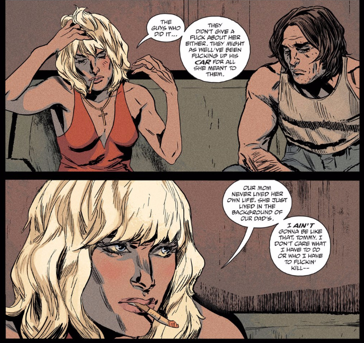 Unfortunately, that disinterest extends to Charlie’s faith in his daughter — not because it’s unearned, but because it’s presented as an utterly run-of-the-mill matter of course. That is, it doesn’t reflect anything about these characters other than their familial bond. Dad dies protecting his daughter. It’s not an inherently uninteresting premise, but I’m not sure it’s an inherently interesting one, either. Without more invested in who either of these characters are, they read more as generic “dad” and “daughter,” reducing this issue to some equally generic beats.