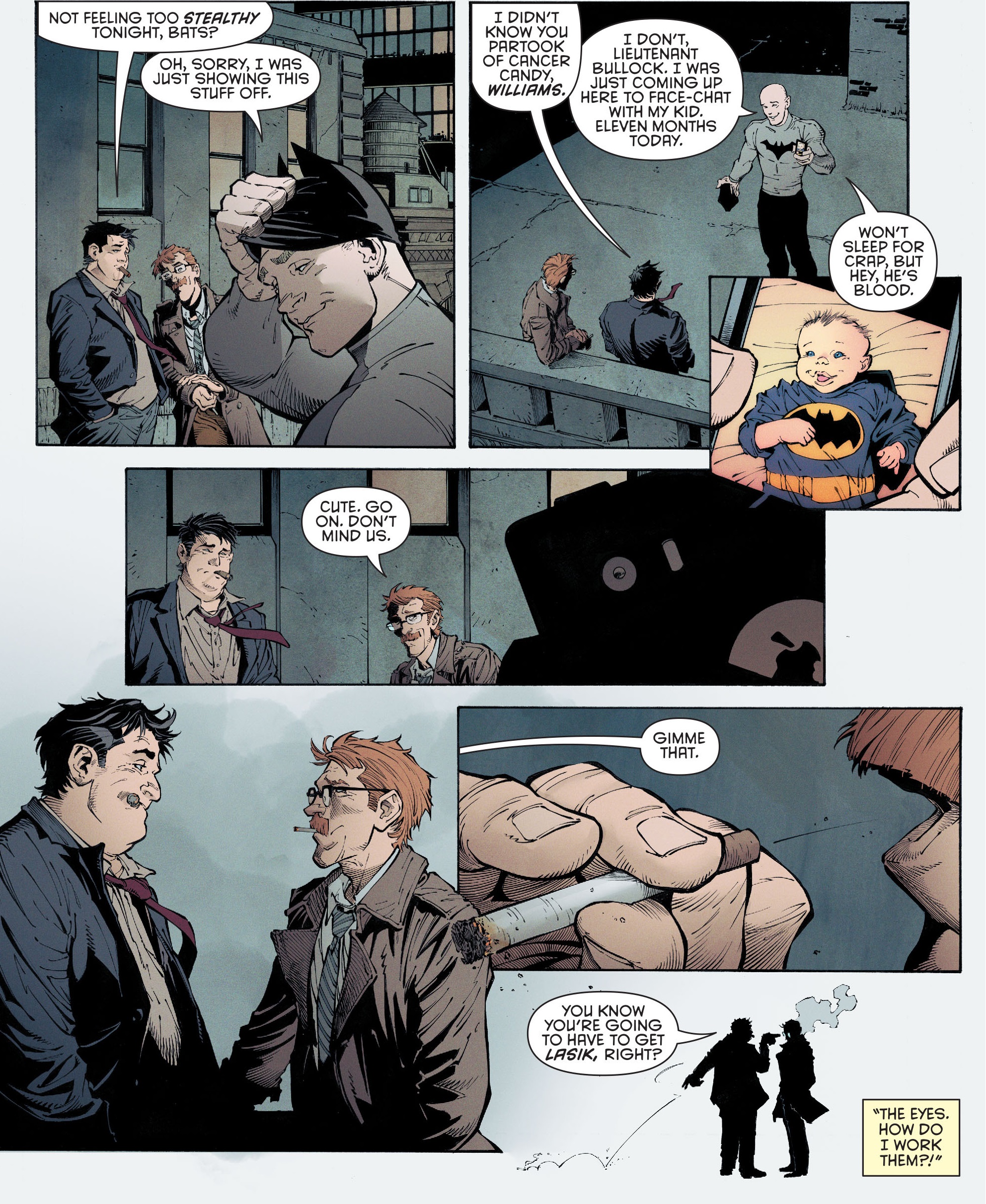 You are very correct in saying that Gordon Batman needs to feel a little more “Gordon” however. I think that Dick as Batman was such a stark contrast from Bruce because of his mood and his fighting mechanics. Since Gordon is pushing 50, I doubt we’ll see a huge difference as far as fighting is concerned. I haven’t read Detective Comics yet, but maybe his experience on the GCPD will make him more Dark Knight Detective than Caped Crusader.