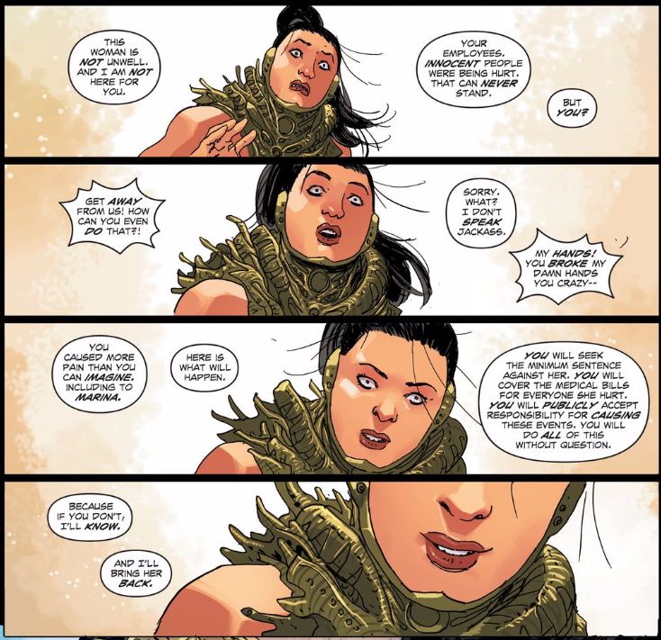 It’s also notable that Midnighter’s approach to handling Marina is absolutely vindicated within the issue.
