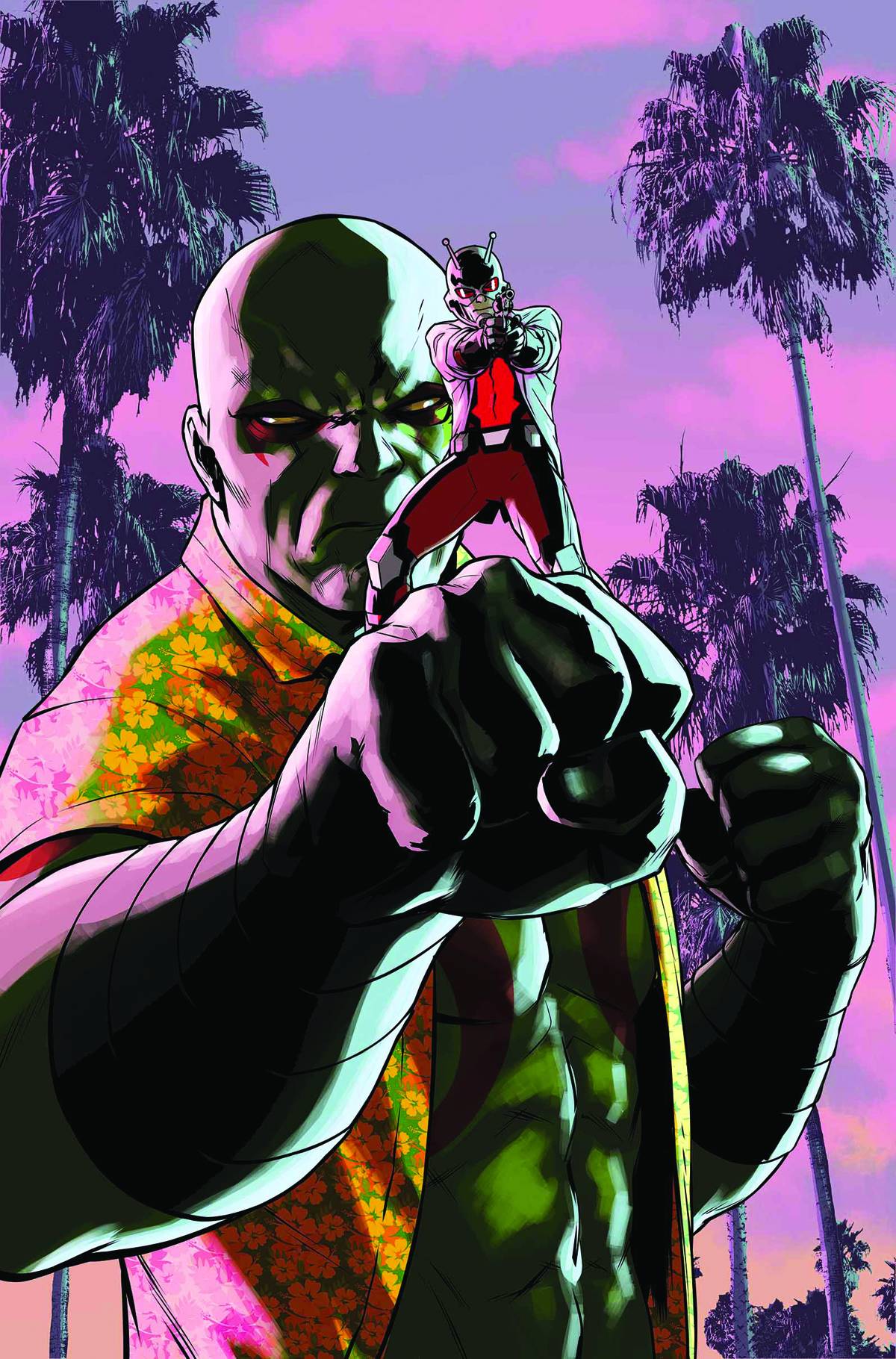 Patrick: Poor Drax just doesn’t fit in on Earth, does he? Not even when he’s hunting his doppelganger from some kind of Bizarro-Guardians of the Galaxy. Still, if there’s one place that his muscle-bound uber-machismo is going to assimilate him rather than expose him, it’s in Miami. The script, by comics vet Nick Giovannetti and comedian Paul Scheer, is packed with jokes.The pair clearly have a handle on the various humorous voices their channeling here, from Rocket’s casual uber-violence to Drax’s hyper-literalism to Ant-Mans put-upon everyman-ness. There are also a bunch of Thor jokes, my favorite being a shirt we should really have printed up: