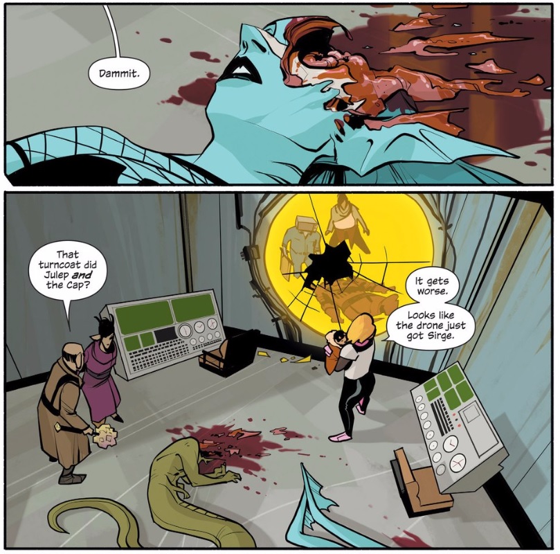 Saga – what kind of world do we live in where Saga doesn’t get its own daily report? Actually, this issue left me a little flat. There have been a couple of main threads lately: The obvious is the Alana/Marko/Hazel reunion, but we all know that’s going to happen much later, as Hazel, the narrator, has told us so and seems honest. The one that I actually was more invested in was The Will’s recovery, which happened, but moderately anticlimactically. His yelling at everyone, telling them they were wrong for saving him – not rebuked by Lying Cat. It’s been left wide open for what will happen in the upcoming sixth chapter.