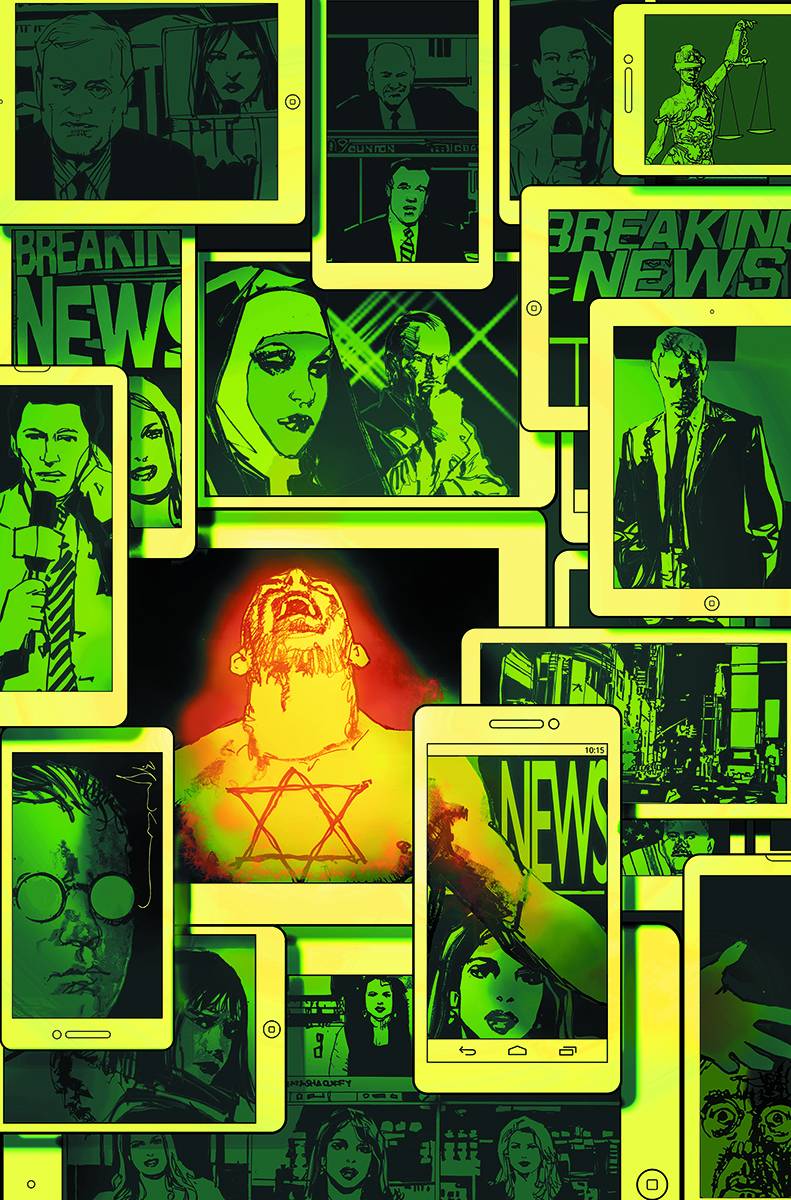 Patrick: Ray Fawkes and Juan Ferreyra’s Gotham by Midnight is so well-informed by the tropes of its two main genres, it’s surprising that the series is able to deliver fresh perspectives on either. But it does! On the supernatural-story end of the equation, this installment’s case-of-the-week is a twist on the “entertainer sells his soul for success” trope. The entertainers in question are Walker Albright and Brooke Patterson — Fox News-esque political pundits — and the cost of their fame and success is that their bullshit bickering is magnified and then literally projected out to their viewers. We get this in the form of a Times Square riot (or, whatever the Gotham equivalent of Times Square is), but the commentary about actual pundits is pretty powerful. These two TV personalities are irresponsibly encouraging and modeling uncivil behavior with no regard for their effect on the population, so long as they have the ratings. That’s a Faustian bargain with or without the supernatural underpinnings, and I love how quickly Corrigan and Tarr blow past the explanation.