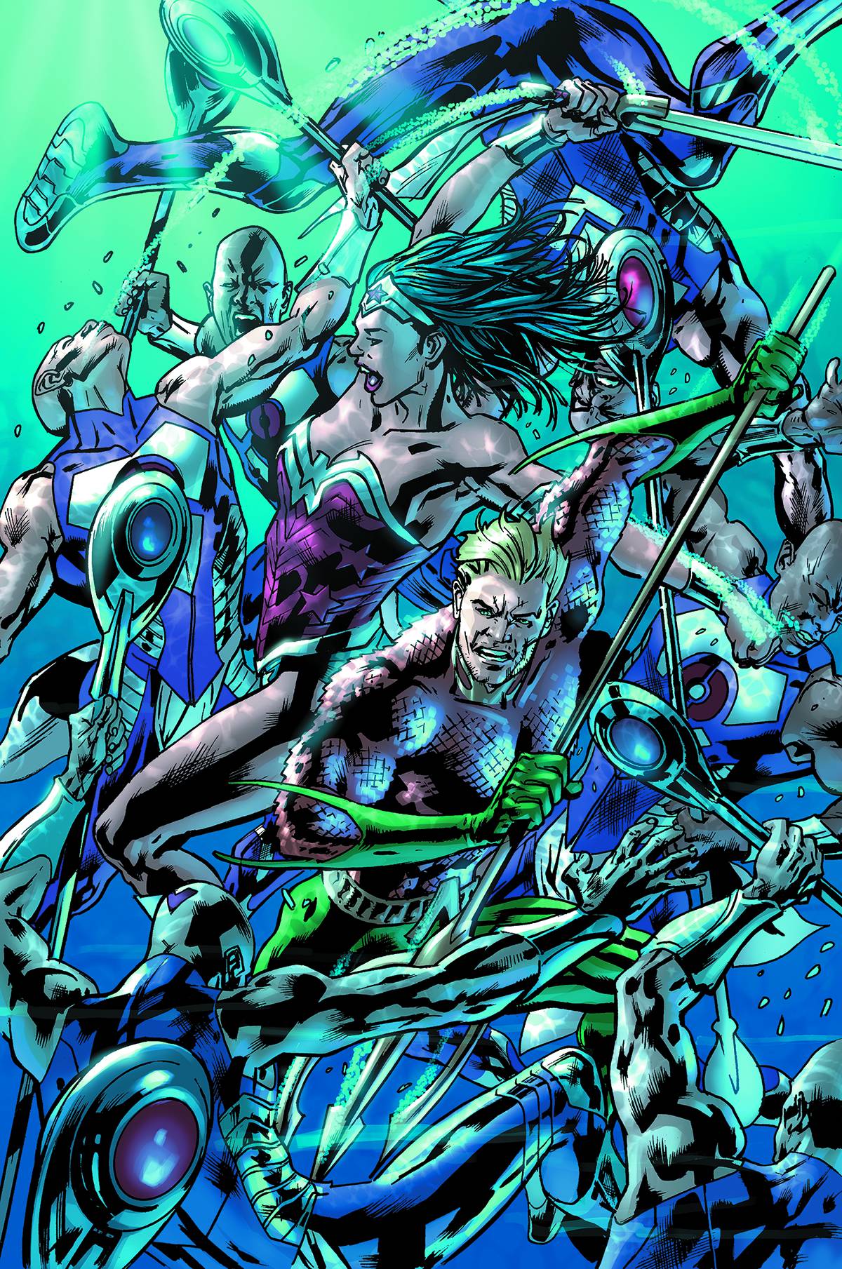 Though not as prominent, Hitch also has been using this arc as a vehicle to explore the difference between gods and superheroes. Though Batman doesn’t plan on having the Earth worship him, he’s got something in common with Rao: manipulation. While Rao is manipulating people on a cellular level, Batman is manipulating them the old fashioned way. The reason that Superman gets his blood examined is because Batman subtly suggested that was why he was so trusting in the last issue — which explains Batman’s lack of surprise at Vic’s findings. Though there are many scary things about Batman, the one that people often overlook is that he always gets what he wants in the end. You know what was an unexpected breath of fresh air in this issue? Cyborg’s relationship with his father. There’s a moment where Silas Stone almost veers into mad scientist territory but Vic politely shuts him down. If this was Justice League or Cyborg he would’ve had a lab-smashing temper tantrum.