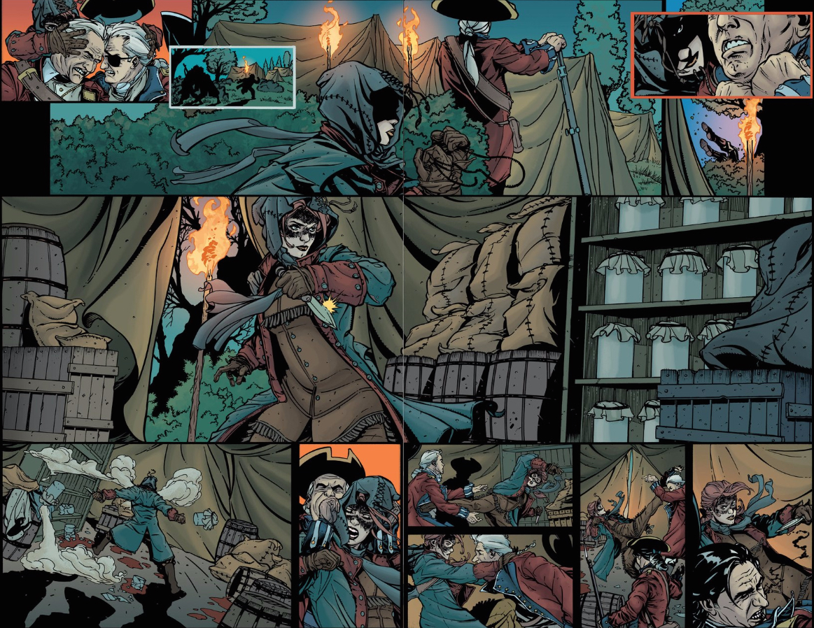 Indeed, Victoria Adams’ history seems just as full of killing as Wolverine’s, albeit with a decidedly more patriotic bent. As far as we know, that history begins during the American Revolution, where we meet Victoria sabotaging a British encampment.