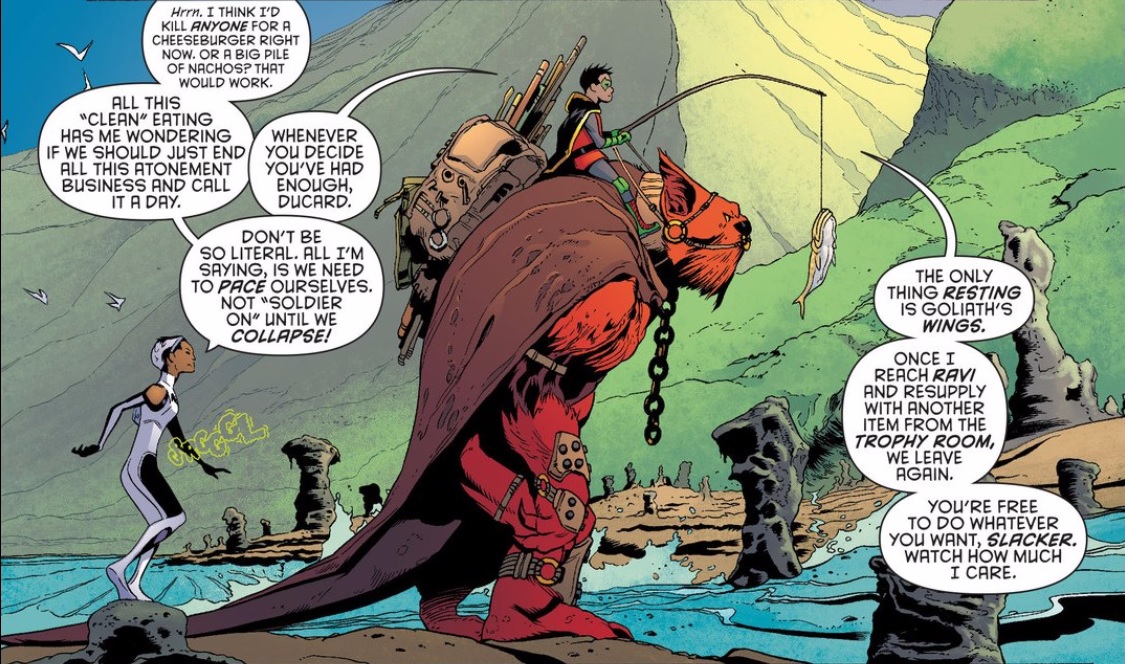 After all, if everything Talia says about Darga is true, then that means there were some noble motives to the al Ghul’s horrific actions; even Damian’s Year of Blood, which seemed like nothing but a soul-killing bloodbath, served a higher purpose on some level. Undoing his actions during that year may alleviate Damian’s conscience, but is that worth potentially damning the entire world? I imagine that’s a question he’s going to be asking himself throughout the rest of this storyline — or, at least, he will if he ever gets another chance to be introspective with Talia around, mucking things up.