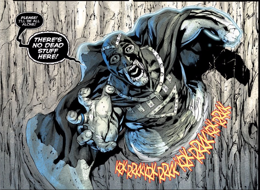 So Black Racer is not really a villain here, even if he is Barry’s antagonist. He shows Barry a Christmas Carol-like vision of the world to help Barry understand the role and necessity of death, but it’s obviously not a mantle that The Flash can take on lightly. He even goes so far as to try and kill Black Racer, but ends up realizing that leaving death unmoored would only make things worse. In the end he allows himself to merge with Black Racer and accept the title of God of Death.