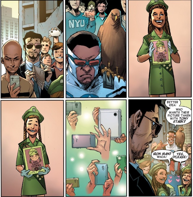 I agree this wasn’t a good comic and I’m also not sure of the intent. It sure seemed cute, and I had similar feelings about Iron Tony and the people falling off the bridge and why the hell would Stark seem to happily let Wilson flounder in what was obviously going to be a racially charged moment? That sure seemed shitty.