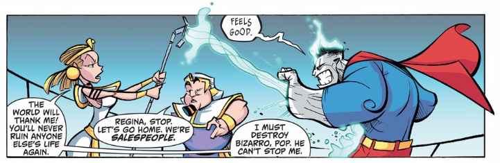 Corson’s sympathetic take on his lead character extends to the villains as well. One of the few weak moments in Bizarro was King Tut’s daughter’s transformation into a supervillain, which seemed to go against all the priorities and goals she so proudly proclaimed earlier in the issue. Issue 6 doesn’t necessarily fix that moment, but it does acknowledge the ridiculousness of the entire situation.