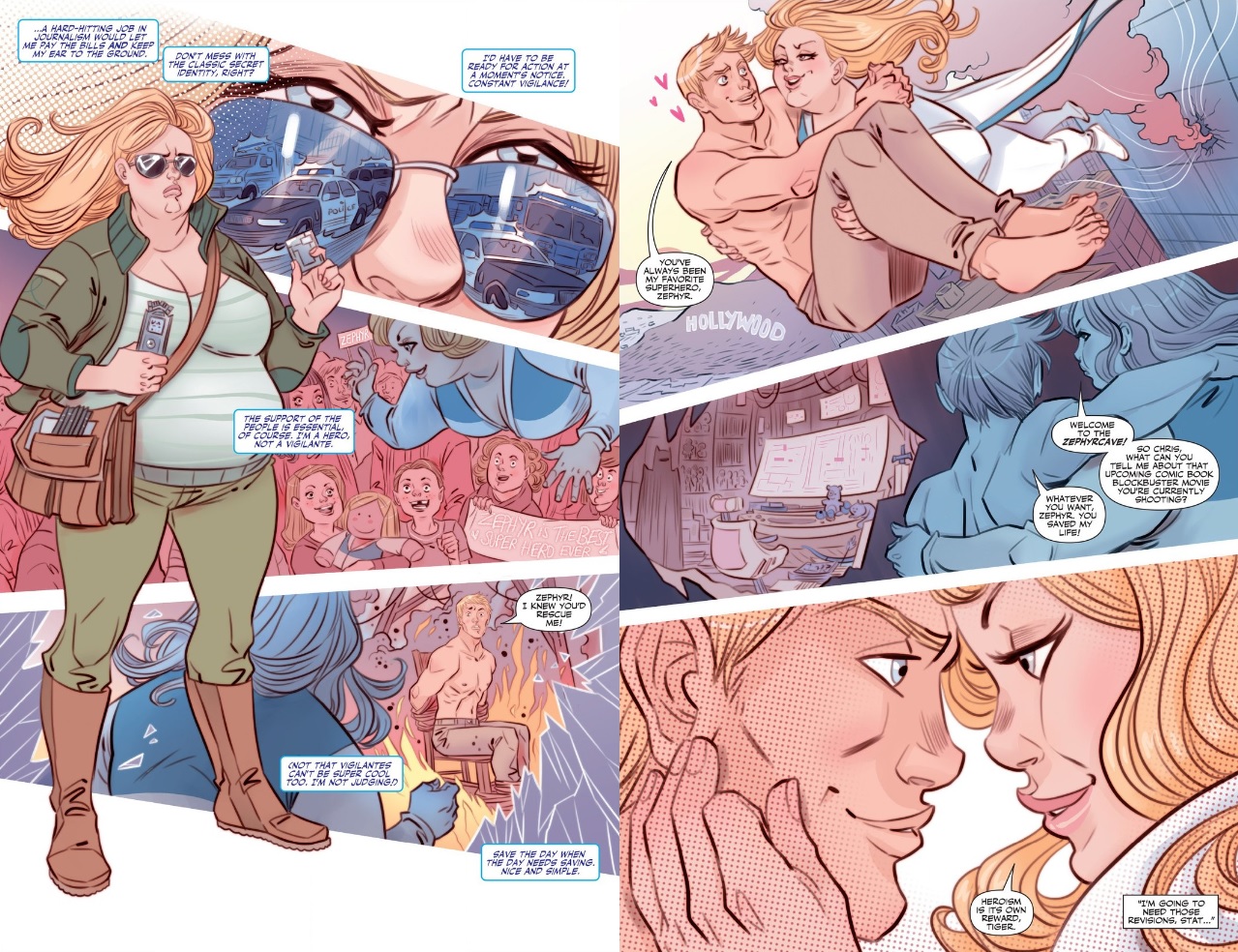 Spencer: I don’t know what’s more notable about Valiant Comics’ new series Faith: that its hero is an overweight woman, or that absolutely no attention is called to that fact within the narrative itself. There’s definitely something progressive about Faith’s headlining role, especially within the world of superhero comics (where practically every character might as well be a GQ/Victoria’s Secret model), but I feel like it’s even more progressive to let that fact speak for itself. Faith isn’t designed to be a talking point or the star of some sort of “very special episode” — she’s allowed to just be Faith, and fortunately, Faith is pretty extraordinary.