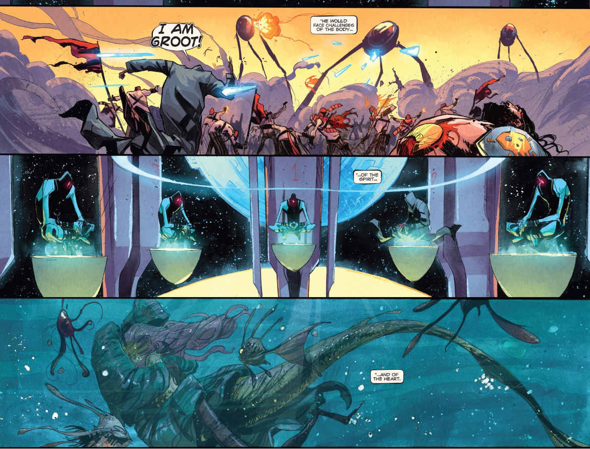 Perhaps the most frustrating part, though, is that Groot’s quest was all a waste — in spite of his systematic following of every clue, he ultimately finds Rocket thanks to a convenient TV report showing exactly where he is. I suppose that leaves a missing piece to the puzzle, but it sure makes all that work Groot put in feel like a waste.