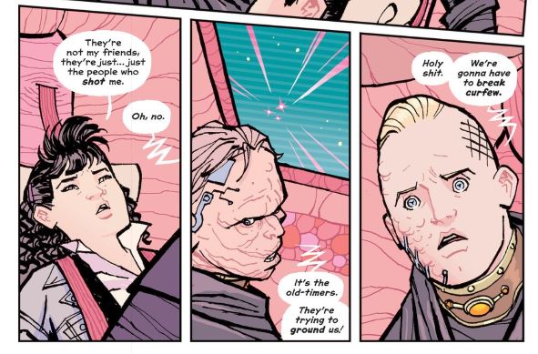Speaking of those titular Paper Girls, by the end of the issue most of them have traveled to the future. It’s not clear exactly where or when they have gone, but it’s far enough in the future that Erin doesn’t perm her hair anymore and iPods exist. Taking the gang out of 1988 and into some version of the future is a bold choice. Given the quality of the storytelling in this series, I am psyched to see how it all plays out, even if I am only ever 50% sure what’s happening.